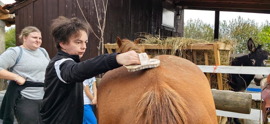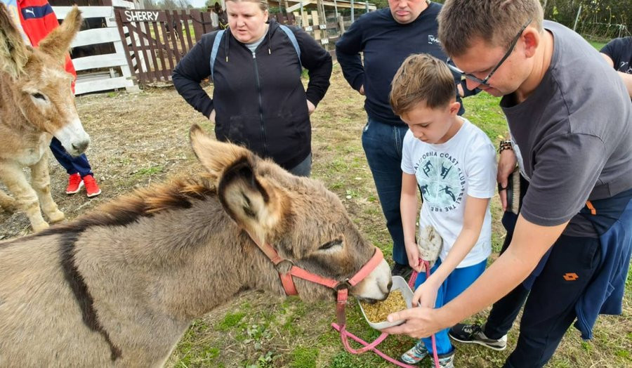 Kažu da ljubav ide kroz želudac, stoga nam je prva aktivnost bila hranjenje magaraca. Toni, Bleki, Sherry, Lily, Maša, Tanga, Rea i Točkica inače jako vole zob. Bili su vrlo umiljati, pa smo ih osim što smo ih hranili, iščetkali, još malo mazili, a napravili smo i par ‘selfie-ja’. Mislimo da im se jako svidjela pažnja, no ipak, morali smo biti oprezni, jer ako bi jednom magarcu dali više pažnje nego drugom, taj drugi bi se odmah odlučio za ljubomorni pothvat, točnije, udario bi svog prijatelja. Kako ne bi bilo ljubomore, svakog magarca smo malo prošetali, pa su na kraju svi bili sretni, zadovoljni i najvažnije siti.