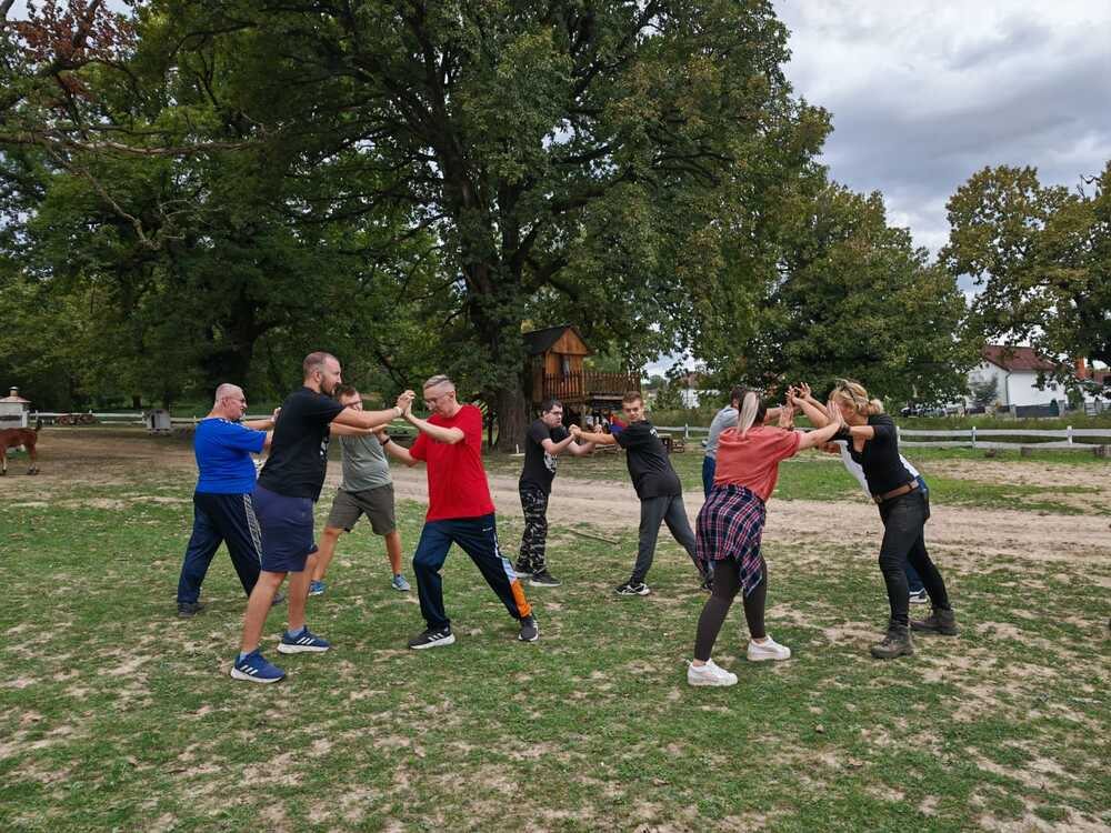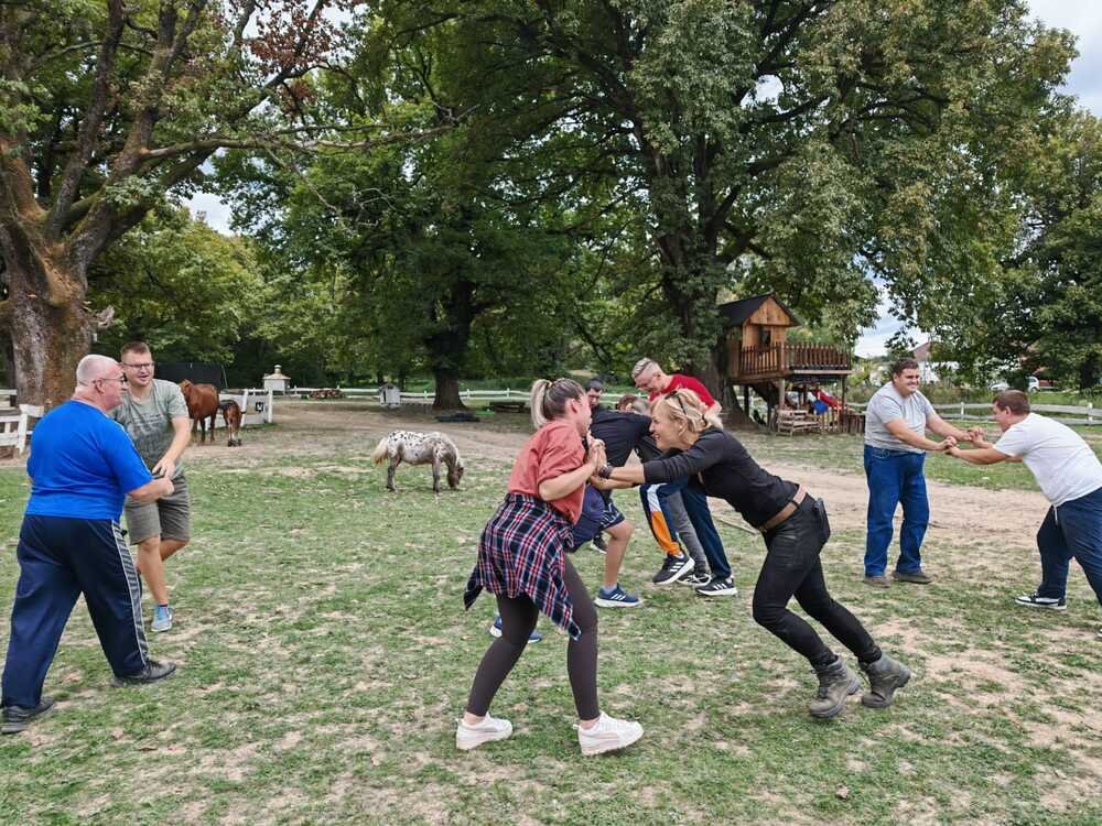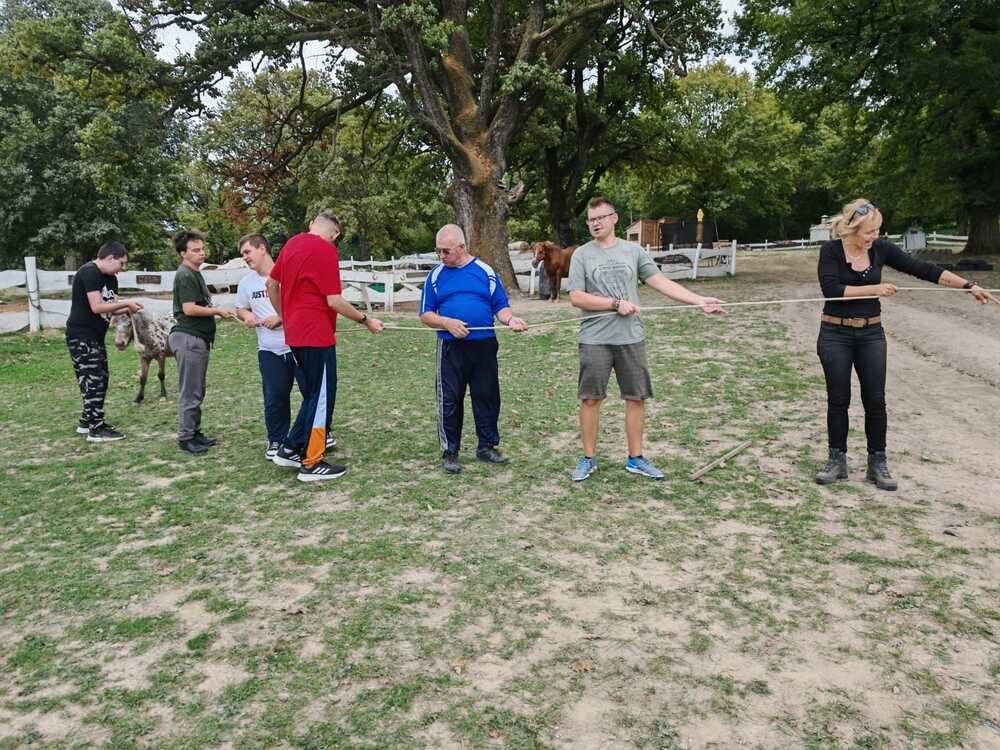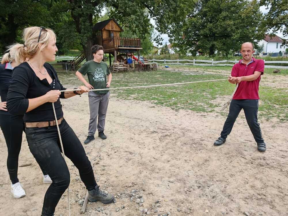 Nastavili smo sa starinskim igrama – povlačenjem užeta. Shvatili smo da nam ta vještina još treba malo dorade, pa smo se okušali u vježbi u parovima, gdje smo jedni druge povlačili ili pogurivali. I tu je smijeh bio naš vjerni pratitelj.