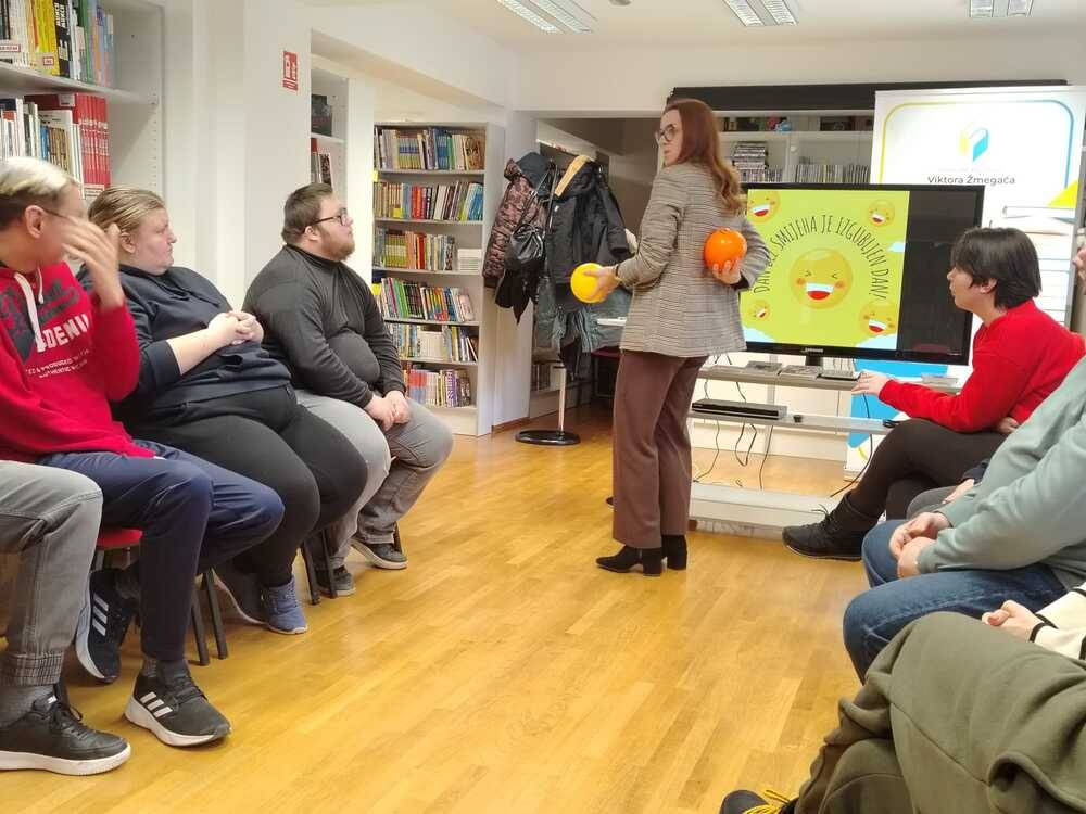 Već drugi put ovog mjeseca, 29. 1. 2026., članovi Udruge Vretenac (poludnevni boravak) s veseljem su posjetili Gradsku knjižnicu i čitaonicu Viktora Žmegača u Slatini. A razlog? Smijeh!