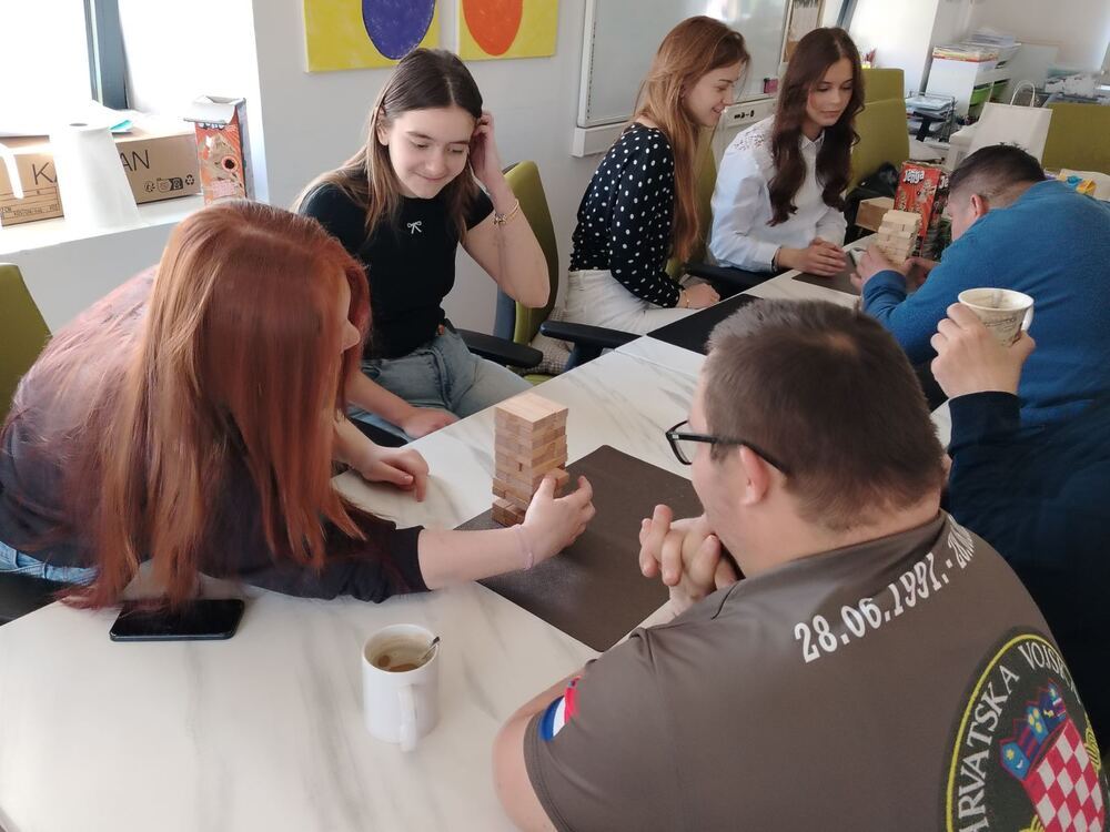 Kroz različite društvene igre naši su Vretenci imali priliku razvijati socijalne vještine, koncentraciju i timski duh. Poseban izazov bio je gradnja tornja od drvenih kocaka – u potpunoj tišini. Ova jednostavna aktivnost otvorila je prostor za razgovor o važnosti komunikacije, strpljenja i međusobnog razumijevanja.