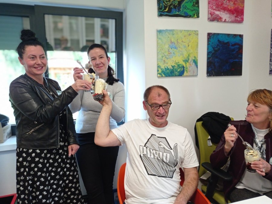 Najvažniji dan za našu Udrugu – MEĐUNARODNI DAN OSOBA S INTELEKTUALNIM TEŠKOĆAMA, obilježili smo raznim događanjima – održali smo 1. inkluzivne sportske susrete na školskom igralištu Osnovne škole Eugena Kumičića; sudjelovali smo na radionici „Prava osoba s invaliditetom“ u Gradskoj knjižnici i čitaonici Slatina zajedno sa našim slatinskim patronažnim sestrama; potom smo sudjelovali na radionici JUST RELAX! koju je održala naša Melita Schmitz, a ono najslađe i najbolje smo ostavili za kraj – održali smo Večer s volonterima na kojoj smo pripremali sladoledne kupove te održali karaoke Ovim druženjima zapisali smo posebne zajedničke trenutke, promicali smo inkluziju i prihvaćanje među svima nama.